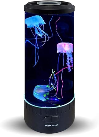 With 3 large glowing jellyfish ocean projector capability and a 20 color remote control this extra wide 14 inch tall water tube jellyfish lamp makes a perfect extra sensory nightlight for the sensory seekers in your family.