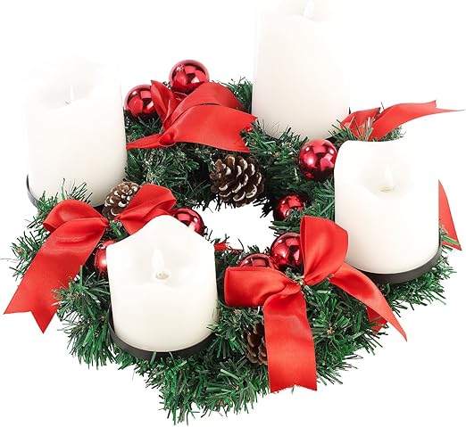 Spetebo Adventskranz Mit 4 Led Kerzen Und Fernbedienung Roter Weihnachtskranz Mit Echtwachskerzen Amazon De Kuche Haushalt