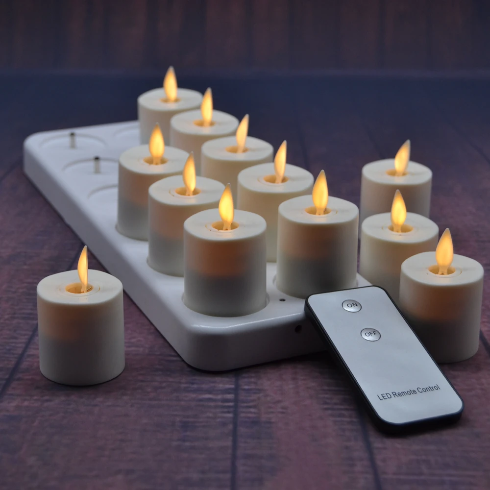 12 wiederaufladbare led teelichte mit schalter auf der unterseite ultralange led lebensdauer.