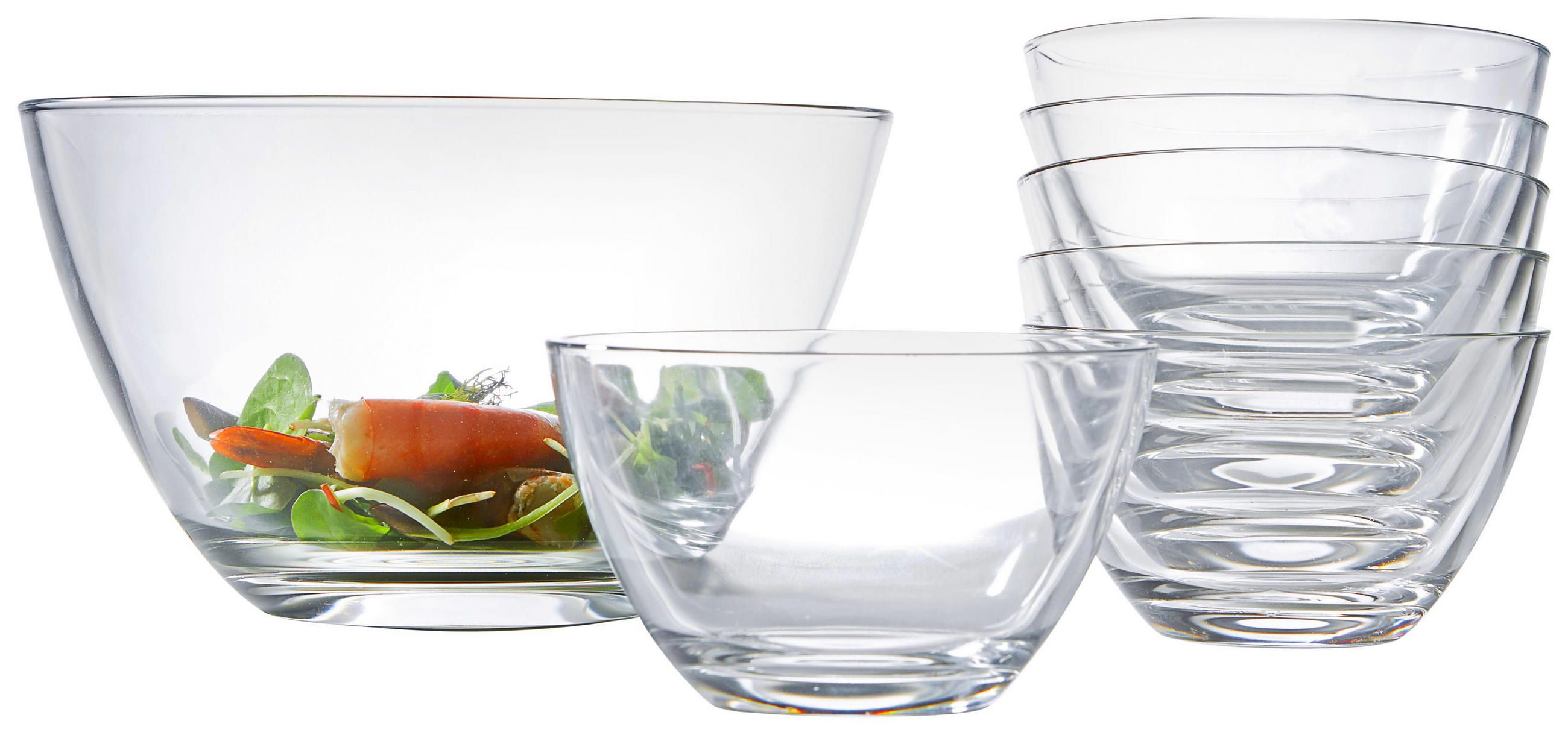 Das set besteht aus 7 klaren schüsseln aus hochwertigem glas die universell einsetzbar sind.