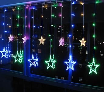 Lichtervorhang fenster sterne warmweiß 12 sterne 2m 138 leds lichterkette mit 8 anzeigenmodi erweiterbar sternenvorhang mit strombetrieben für innen und außen weihnachten fenster balkon party 12 kostenlose lieferung energieeffizienzklasse.